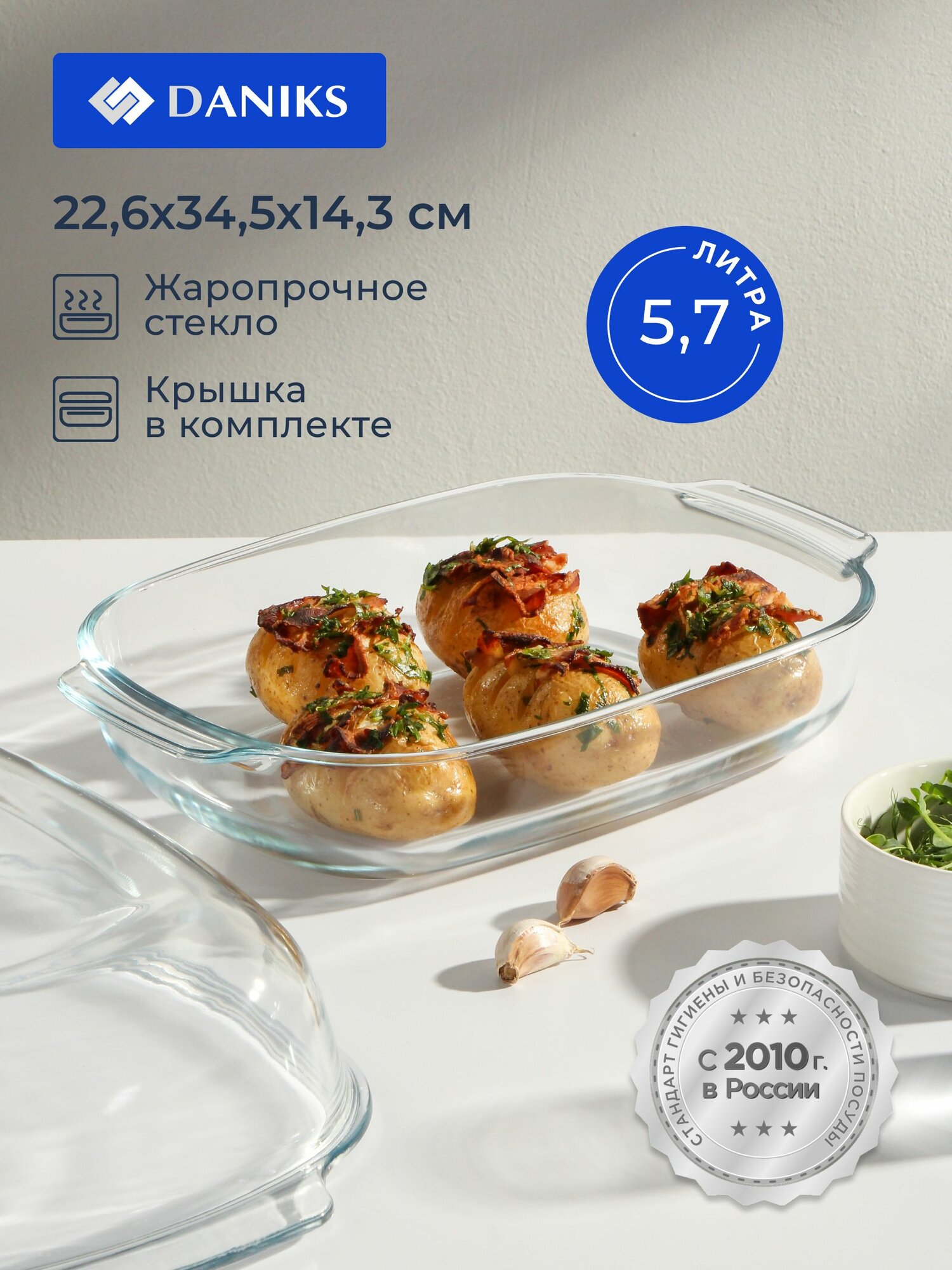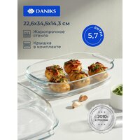 Daniks Форма для запекания прямоугольная с крышкой, 22.6х34.5х14.3 см, стеклянная: сравнение цен, характеристики, фото, актуальное наличие и цены.