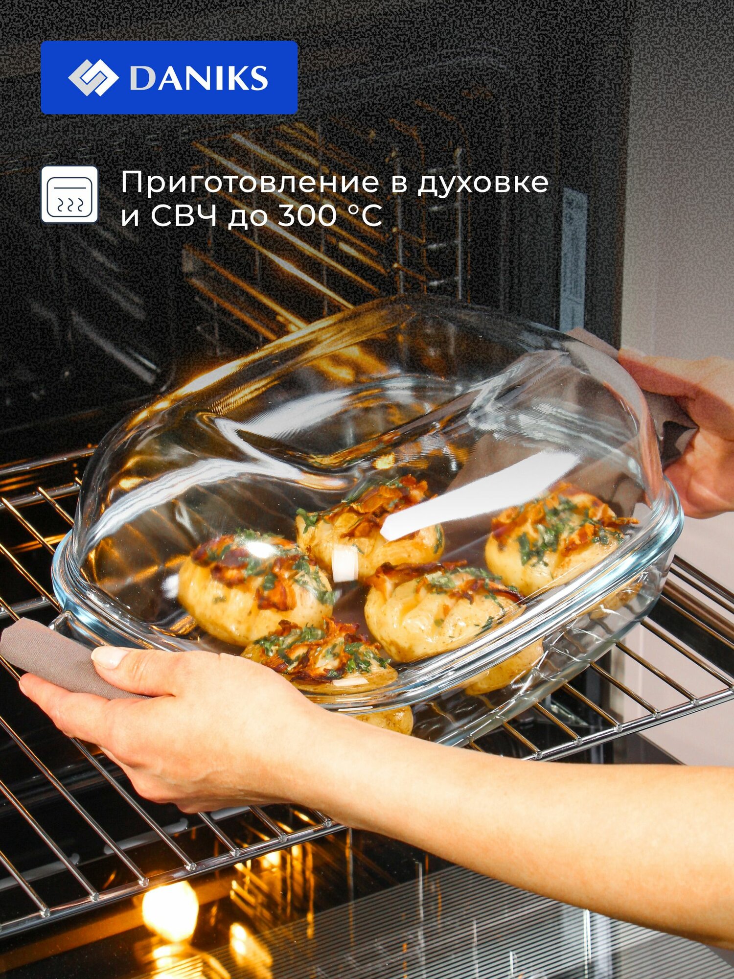 Купить Daniks Форма для запекания прямоугольная с крышкой, 22.6х34.5х14.3 см, стеклянная с доставкой по всей России.