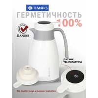 Daniks Термос-кувшин пластик, 1 л, колба стекло, с датчиком, белый