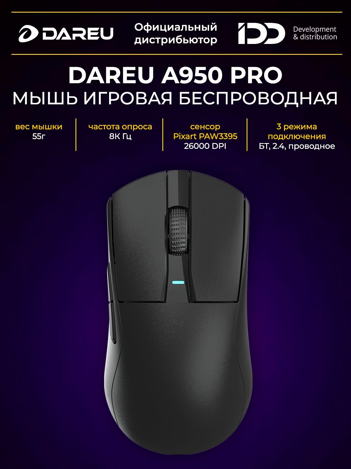 DAREU A950PRO 4K Компьютерная мышь беспроводная, 300mAh, PAW3395, Черный: сравнение цен, характеристики, фото, актуальное наличие и цены.