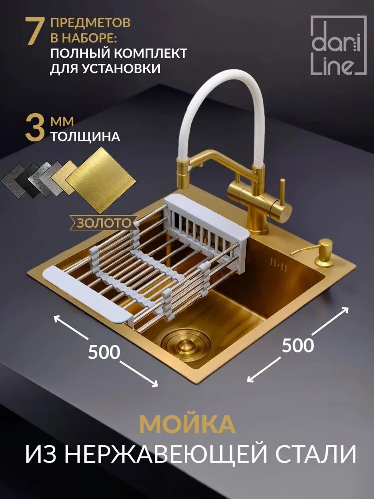 Купить Мойка для кухни нержавеющая 50х50х21, глубокая , антишум, матовая, dariLine нержавеющая сталь AISI, золотой сатин с доставкой по всей России. Мойка для кухни нержавеющая 50х50х21, глубокая , антишум, матовая, dariLine нержавеющая сталь AISI, золотой сатин: сравнение цен, характеристики, фото, актуальное наличие и цены.