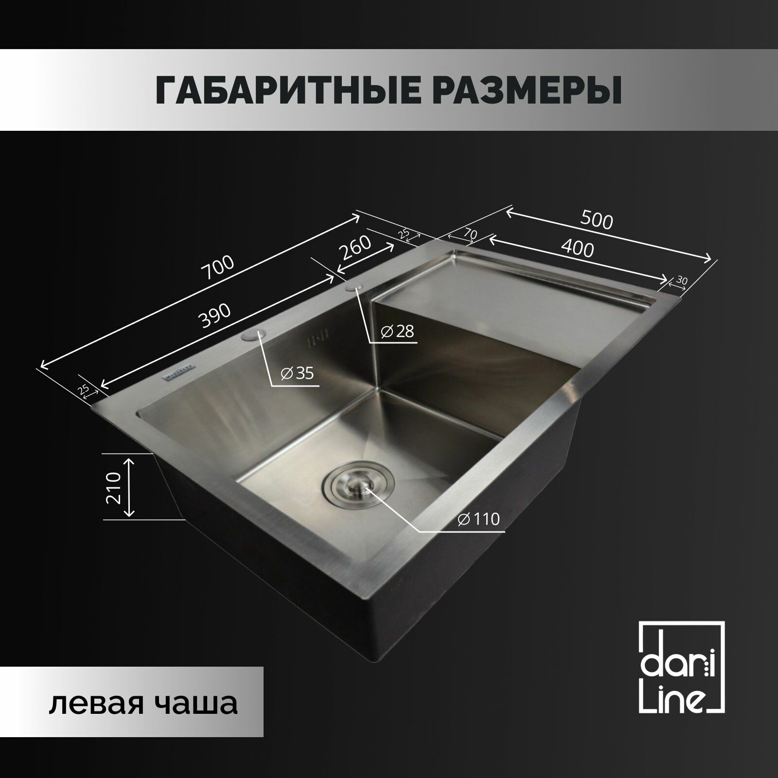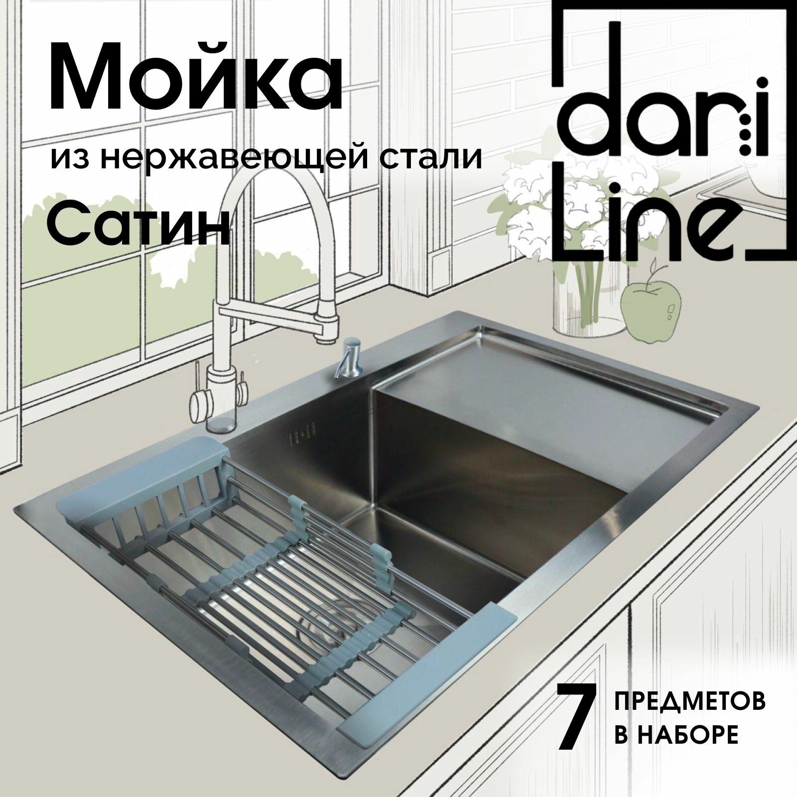 Купить DariLine мойка для кухни из нержавеющей стали с левой чашей 70х50х21, цвет сатин, кухонная мойка SUS, раковина для кухни с доставкой по всей России. DariLine мойка для кухни из нержавеющей стали с левой чашей 70х50х21, цвет сатин, кухонная мойка SUS, раковина для кухни: сравнение цен, характеристики, фото, актуальное наличие и цены.