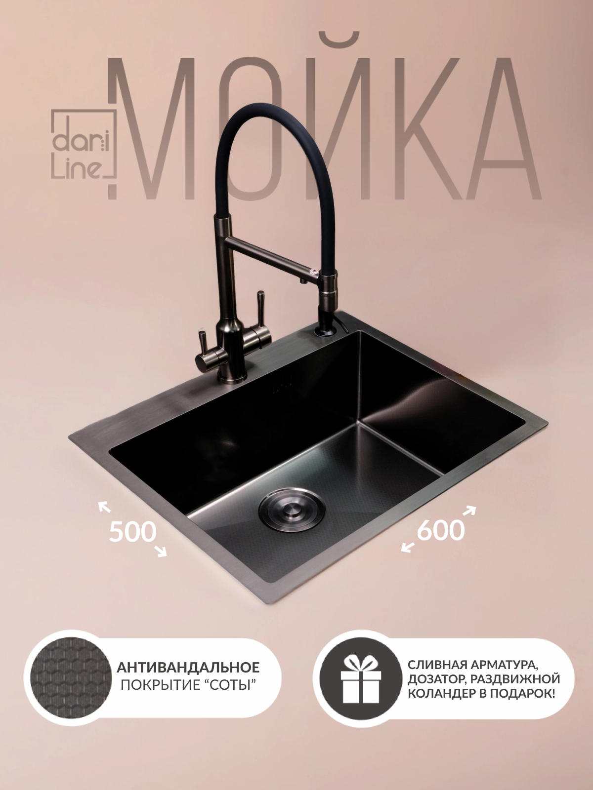 Купить Мойка для кухни нержавеющая, 60х50х21, цвет графит, черный, раковина для кухни, нано покрытие с доставкой по всей России. Мойка для кухни нержавеющая, 60х50х21, цвет графит, черный, раковина для кухни, нано покрытие: сравнение цен, характеристики, фото, актуальное наличие и цены.
