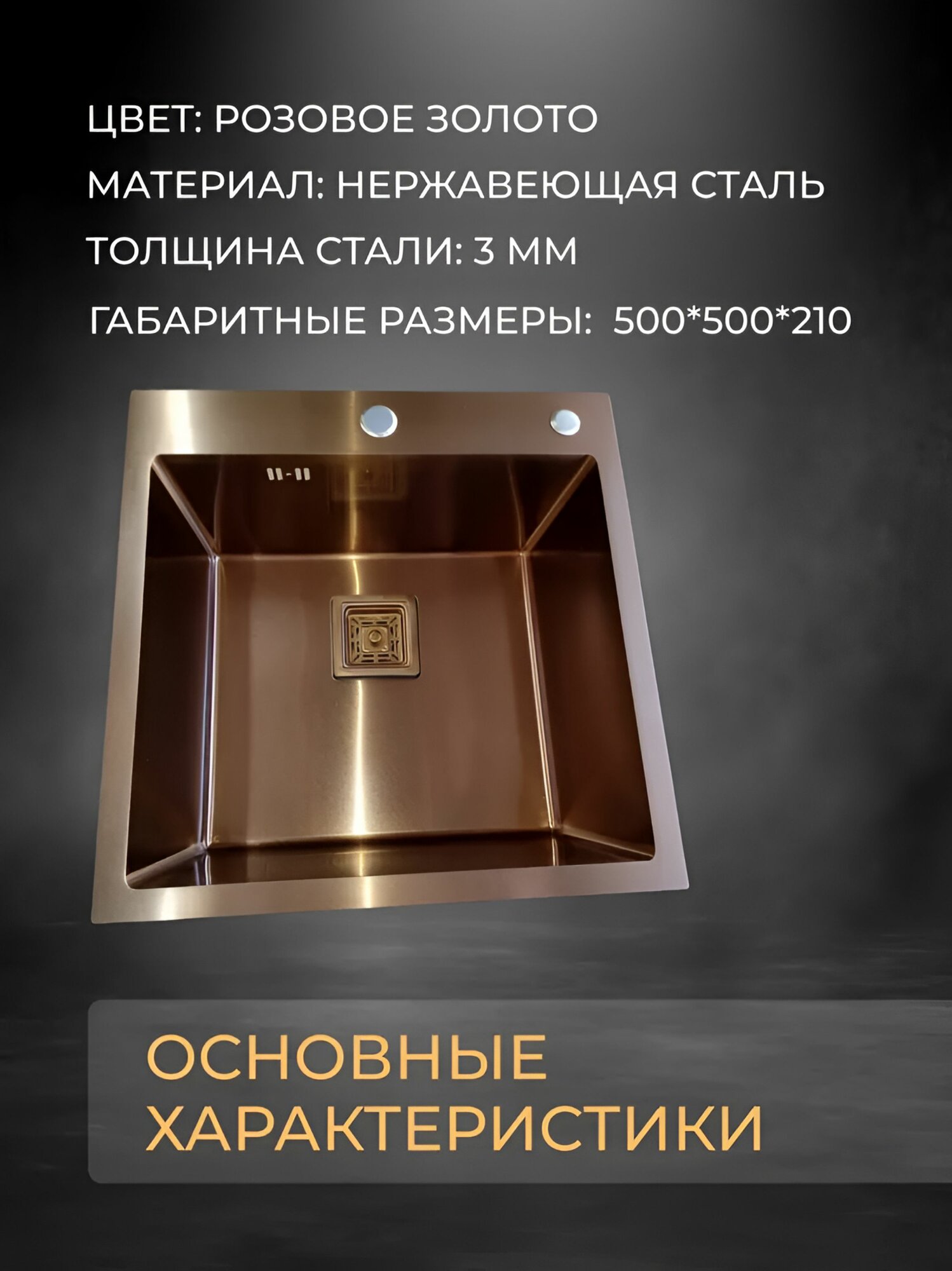Купить DariLine мойка для кухни с квадратным сливом в цвет мойки 50х50х21, нержавеющая сталь, цвет розовое золото с доставкой по всей России. DariLine мойка для кухни с квадратным сливом в цвет мойки 50х50х21, нержавеющая сталь, цвет розовое золото: сравнение цен, характеристики, фото, актуальное наличие и цены.