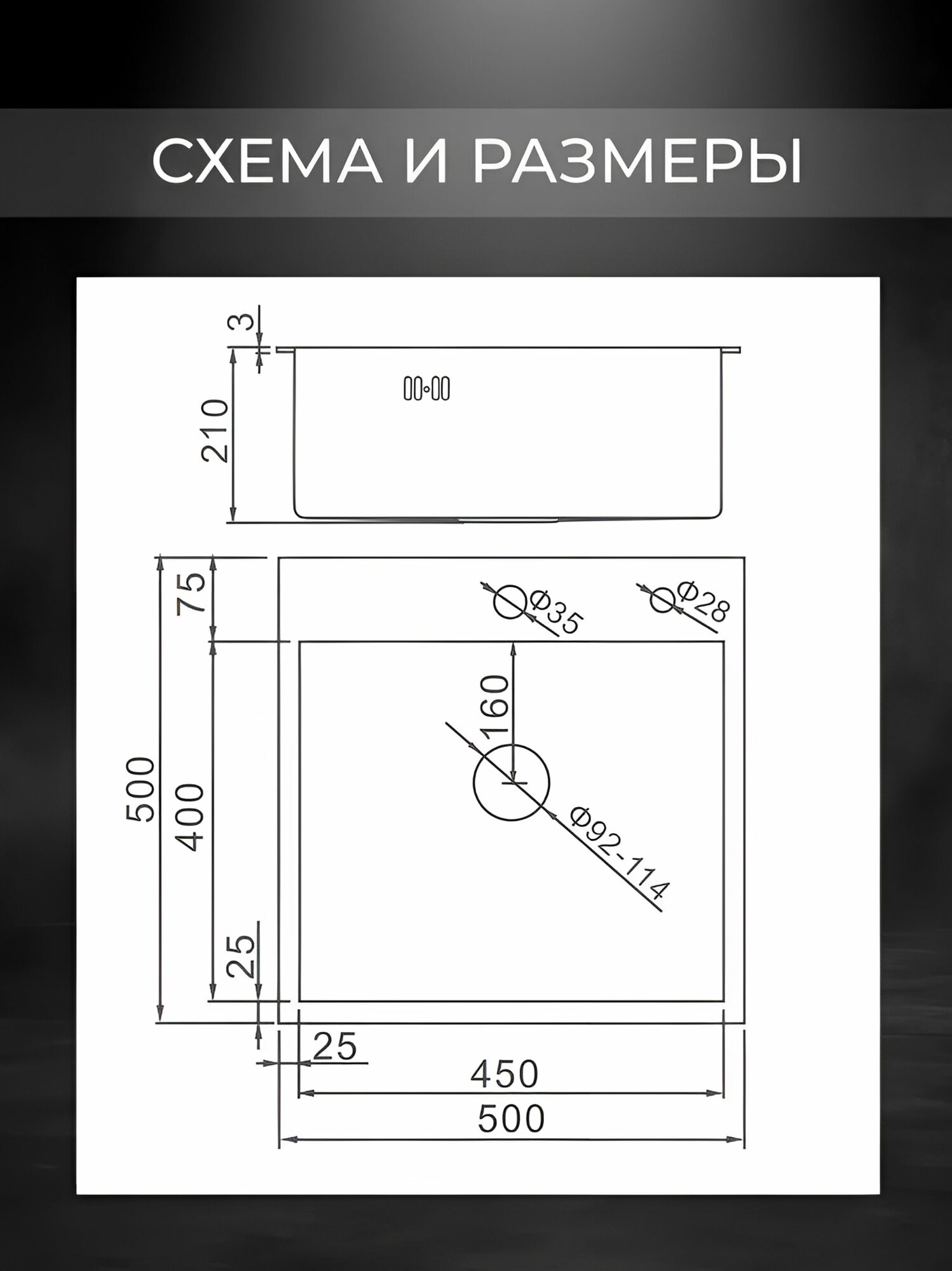 Кухонная мойка из нержавеющей стали DARILINE универсального монтажа с квадратным сливом - это новинка среди моек для кухни из нержавеющей стали! Мойка из нержавеющей стали для кухни изготовлена из высококачественной нержавеющей стали толщиной от 1 до 3 мм. Химический состав и свойства материала делают мойку наиболее подходящей для применения в пищевой промышленности. Раковина показывает высокие характеристики коррозийной стойкости в агрессивных средах. В данной модели раковины для кухни двойная шумоизоляция со всех сторон, что позволяет максимально снизить звук от потока воды. Мойка из нержавейки для кухни имеет антибактериальное PVD покрытие. Поверхность мойки на кухне с таким покрытием наиболее проста в уходе, устойчива к механическим повреждениям, высоким температурам. С нее легко удалить следы жира, грязи и разводы от воды. Глубина мойки для кухни 210 мм делает ее вместительной и удобной в эксплуатации. Раковина проста в установке и имеет универсальный тип монтажа: накладная, врезная или под столешницу. Мойка укомплектована сифоном с защитой от перелива, врезным дозатором для жидкого мыла или средства для мытья посуды и коландером. Коландер размещается в чаше и позволяет размораживать продукты или сушить посуду после мытья, позволяя более рационально использовать пространство. Врезной дозатор также поможет освободить место на кухне.
