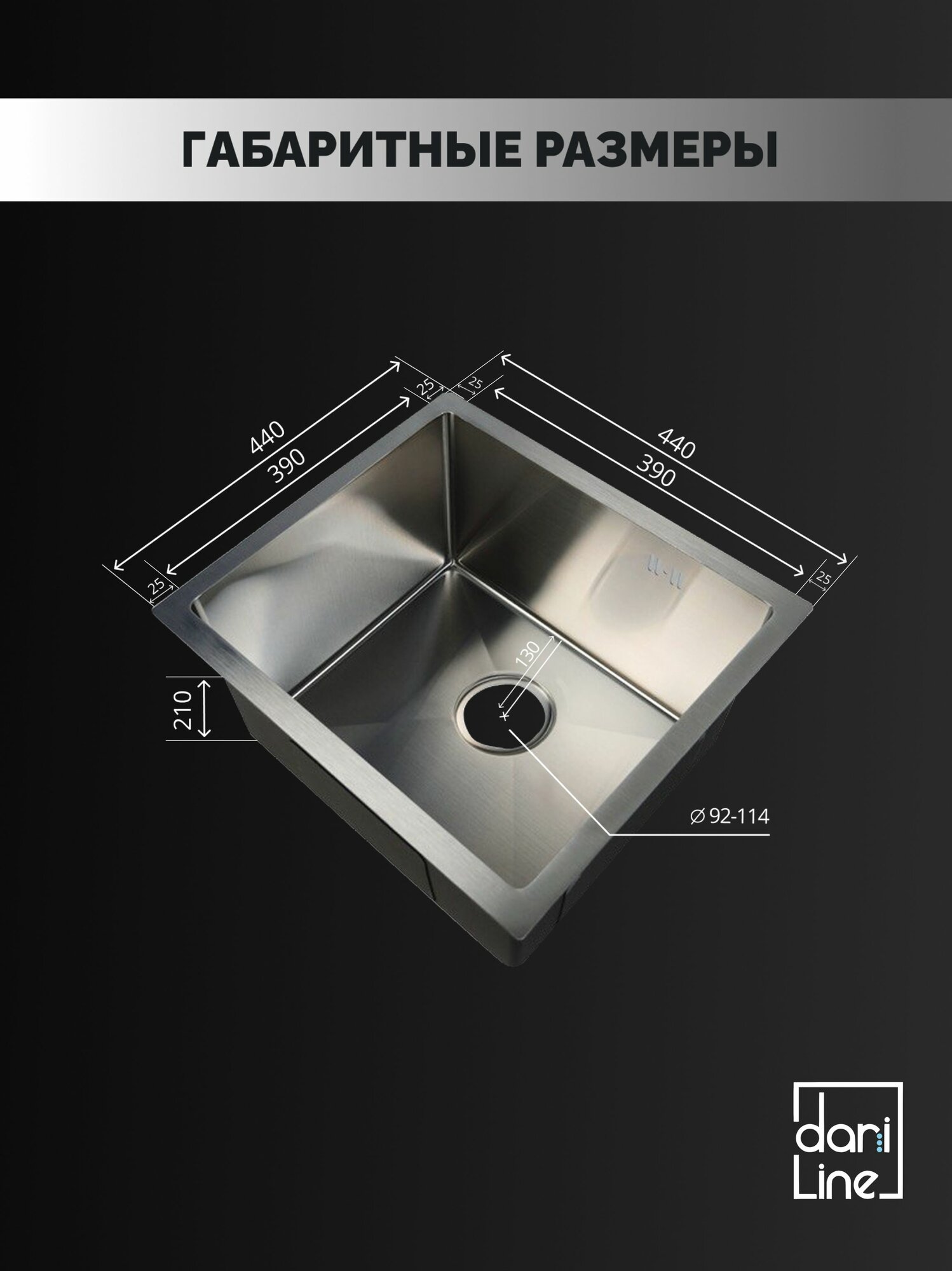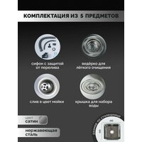 Кухонная мойка DARILINE универсального монтажа изготовлена из высококачественной нержавеющей стали толщиной от 1 до 3 мм. Химический состав и свойства материала делают раковину наиболее подходящей для применения в пищевой промышленности. Мойка из нержавеющей стали для кухни показывает высокие характеристики коррозийной стойкости в агрессивных средах. В данной модели раковины для кухни усиленная шумоизоляция со всех сторон, что позволяет максимально снизить звук от потока воды. Мойка из нержавейки для кухни имеет антибактериальное PVD покрытие. Поверхность мойки на кухне с таким покрытием наиболее проста в уходе, устойчива к механическим повреждениям, высоким температурам. С нее легко удалить следы жира, грязи и разводы от воды. Глубина мойки для кухни 210 мм делает ее вместительной и удобной в эксплуатации. Широкий диаметр слива, препятствует возникновению засоров. Раковина проста в установке и имеет универсальный тип монтажа: накладная, врезная или под столешницу.