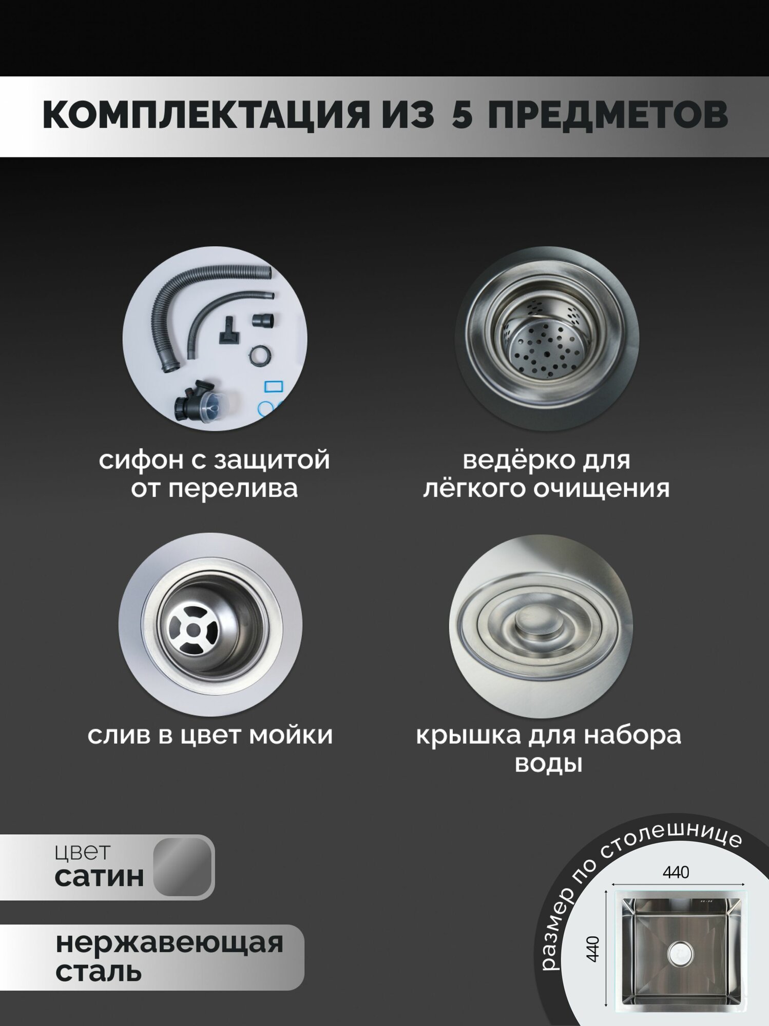 Купить DariLine мойка кухонная из нержавеющей стали 44*44, мойки для кухни, цвет сатин с доставкой по всей России. DariLine мойка кухонная из нержавеющей стали 44*44, мойки для кухни, цвет сатин: сравнение цен, характеристики, фото, актуальное наличие и цены.