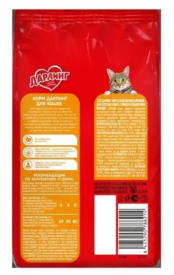 Корм Дарлинг для кошек - это сбалансированное питание, в котором содержится на 100% все, что нужно кошке каждый день. Он сделан с любовью из качественных ингредиентов, а также содержит Омега-6 жирные кислоты и витамины, необходимые Вашей кошке, чтобы быть здоровой, активной и дарить радость Вашей семье.