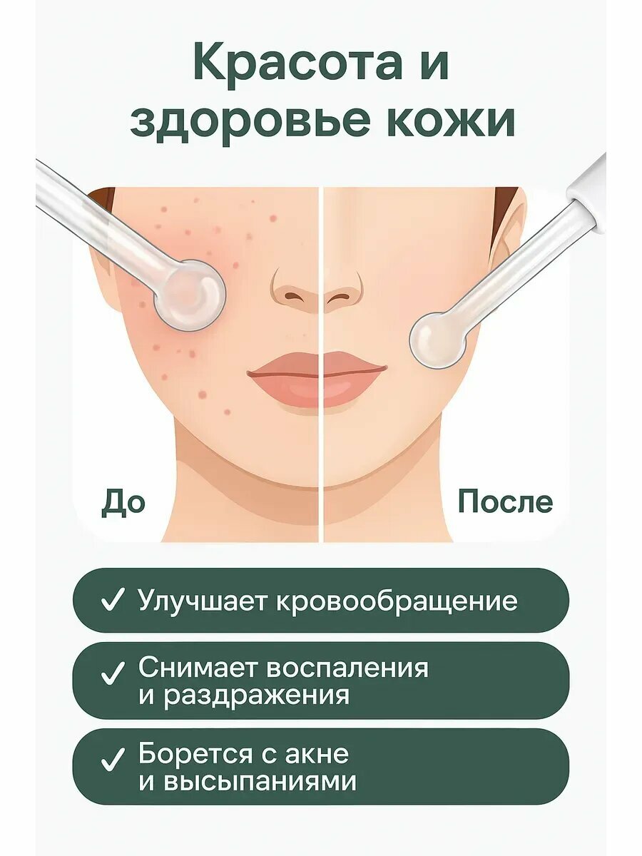 Комплексное решение для лица: Прибор направлен на борьбу с акне (угревой сыпью) и постакне, эффективно сужает поры и устраняет черные точки. Курсовое применение способствует осветлению пигментных пятен, выравниванию тона и рельефа кожи, удалению рубцов и шрамов. Дарсонвализация стимулирует выработку коллагена и эластина, обеспечивая заметный лифтинг-эффект, подтяжку и повышение упругости кожи.