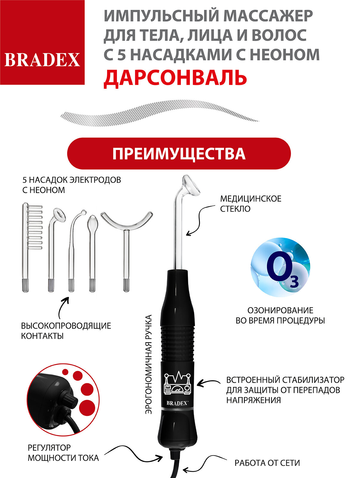 Купить Дарсонваль для волос и лица профессиональный с неоном, 5 насадок с доставкой по всей России. Дарсонваль для волос и лица профессиональный с неоном, 5 насадок: сравнение цен, характеристики, фото, актуальное наличие и цены.