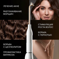 Аппарат Дарсонваль HoneyCare для волос, лица и тела работает по принципу воздействия импульсов переменного тока высокой частоты (215 МГц) и малой силы (100-300 мА) на различные участки кожи, что обеспечивает:
