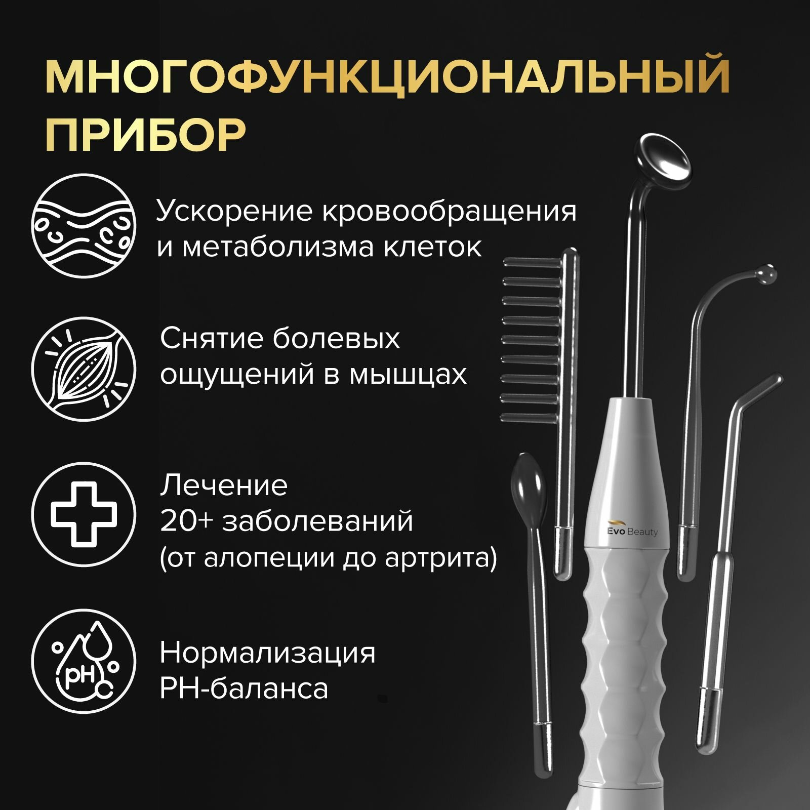 Косметологический аппарат Дарсонваль для волос, лица и тела Evo Beauty. Дарсонваль аппарат с 5 насадками.: сравнение цен, характеристики, фото, актуальное наличие и цены.