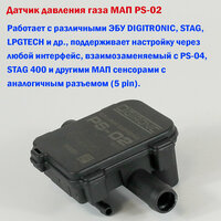 Работает с различными ЭБУ DIGITRONIC, STAG, LPGTECH и др, поддерживает настройку через любой интерфейс, взаимозаменяемый с PS-04, STAG 400 и другими МАП сенсорами с аналогичным разъемом (5 pin).