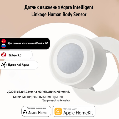Aqara Intelligent Linkage Human Body Sensor RTCGQ13LM - это малогабаритный девайс, осуществляющий контроль за передвижением в зоне своей досягаемости. Радиус действия данной модели составляет 5 м, а угол обнаружения -60°.