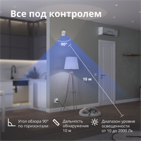 Автоматизируйте повседневные рутинные задачи с помощью приложений Eltex Home, «Дом с Алисой», «Салют» или «Маруся». В SZ-PIR встроен датчик освещенности, который поможет умному дому самому включать и выключать свет в зависимости от времени суток.