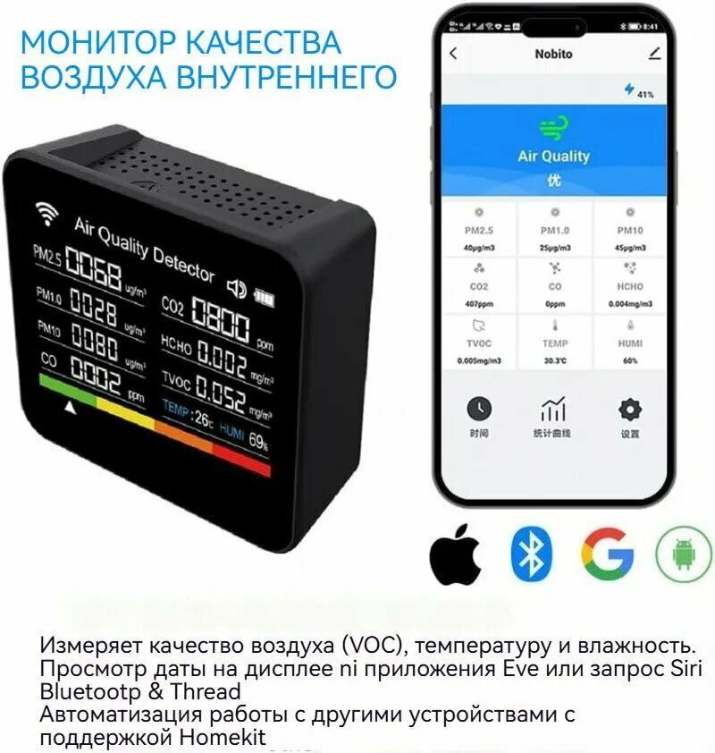 Датчик качества воздуха Tuya 2CO10, многофункциональный, с подключением к Wi-Fi: сравнение цен, характеристики, фото, актуальное наличие и цены.