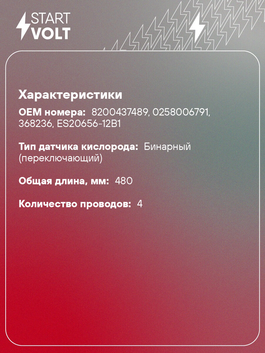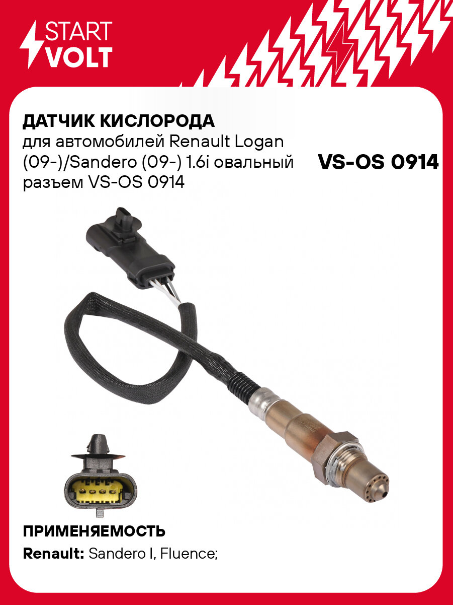 Датчик кислорода для автомобилей Renault Logan (09-)/Sandero (09-) 1.6i овальный разъем VS-OS 0914 StartVolt: сравнение цен, характеристики, фото, актуальное наличие и цены.