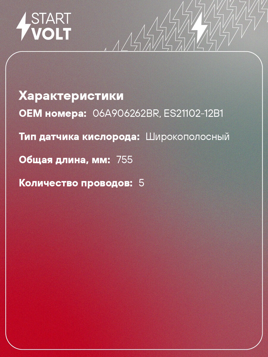 Датчик кислорода для автомобилей VAG Octavia II (04-)/Golf V (04-)/Golf VI (08-) 1.6i до катализатора VS-OS 1826 StartVolt: сравнение цен, характеристики, фото, актуальное наличие и цены.