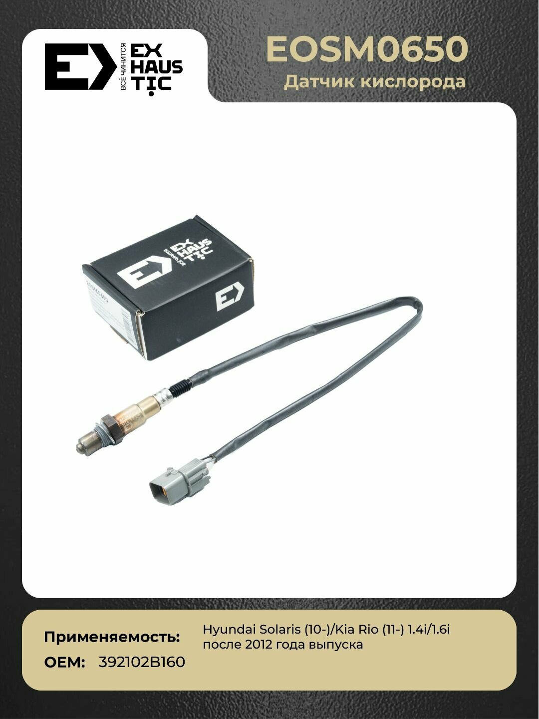 Датчик кислорода глушителя (лямбда-зонд) Exhaustic EOSM0650 Hyundai Solaris (10-), Kia Rio (11-) 1.4i, 1.6i после катализатора после 2012 года выпуска: сравнение цен, характеристики, фото, актуальное наличие и цены.