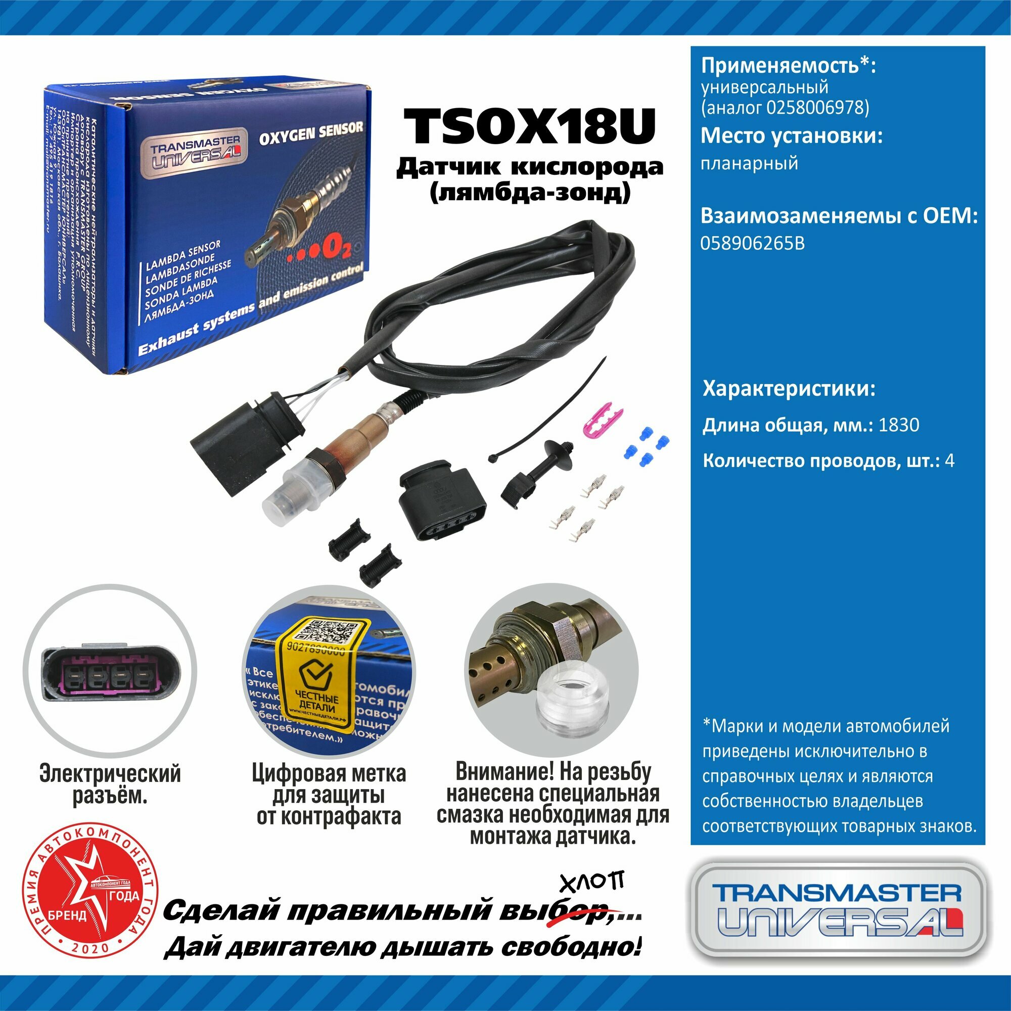 Датчик кислорода (лямбда-зонд) универсальный (аналог 0258006978) планарный, Transmaster universal TSOX18U: сравнение цен, характеристики, фото, актуальное наличие и цены.