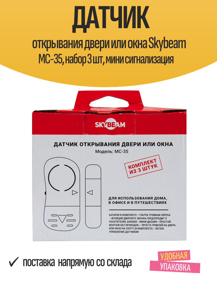 Купить Датчик открывания двери или окна Skybeam MC-35, набор 3 шт, мини сигнализация с доставкой по всей России.