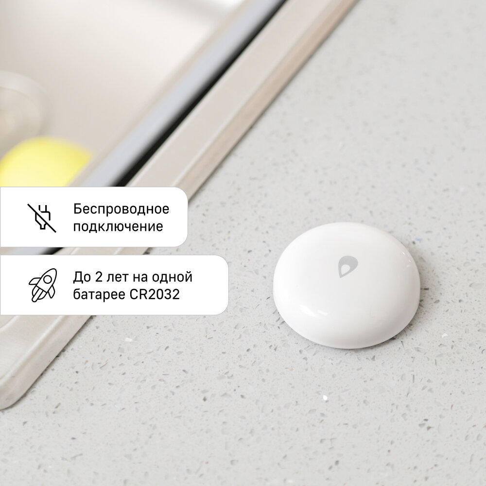 Положите умный беспроводной датчик протечки Aqara T1 под ванну, раковину, стиральную или посудомоечную машину. И не переживайте за то, что испортите имущество или затопите соседей.