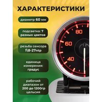 Датчик DEFI A1 Style температуры охлаждающей жидкости - самая качественная реплика оригинального датчика из Японии. Подсветка: 7 разных цветов - устанавливаются самостоятельно. Диаметр: 60мм. Единица измерения: градус. Рабочий диапазон от 20 до 120 гр. Цельсия. Резьба сенсора 1/8-27NTP. Работает без юнита.