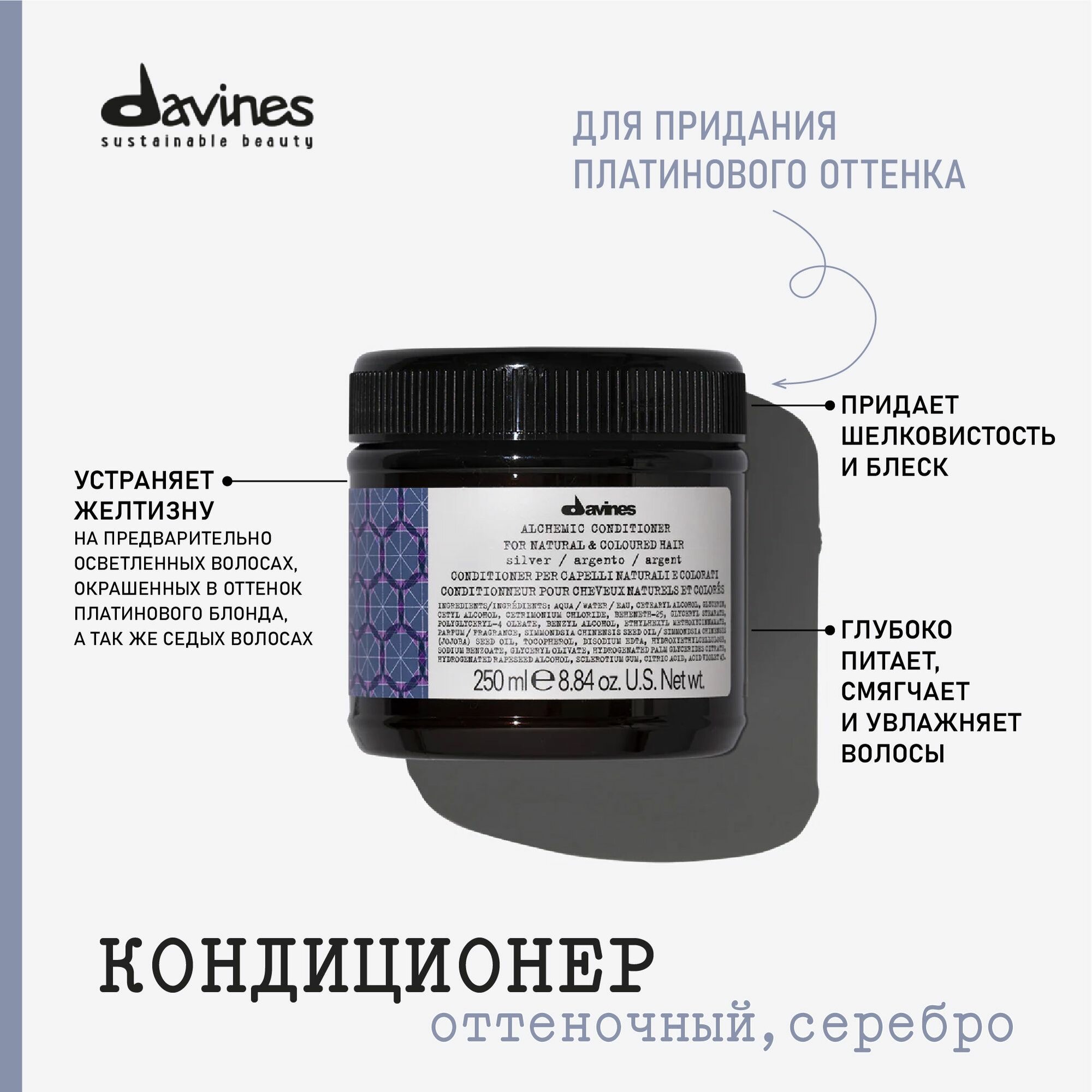 Davines Alchemic Кондиционер профессиональный для окрашенных волос, серебро, Италия: сравнение цен, характеристики, фото, актуальное наличие и цены.