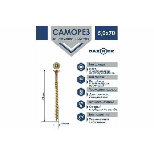 Купить Daxmer Саморез конструкционный универсальный TORX 5,0×70, 250 шт 00000346224 с доставкой по всей России.