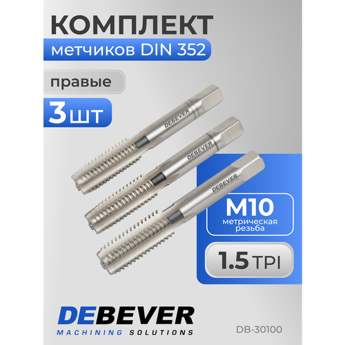 DB-30100 Метчики ручные M10×1.5, HSS, DIN 352, ISO2/6H, комплект из 3-х штук