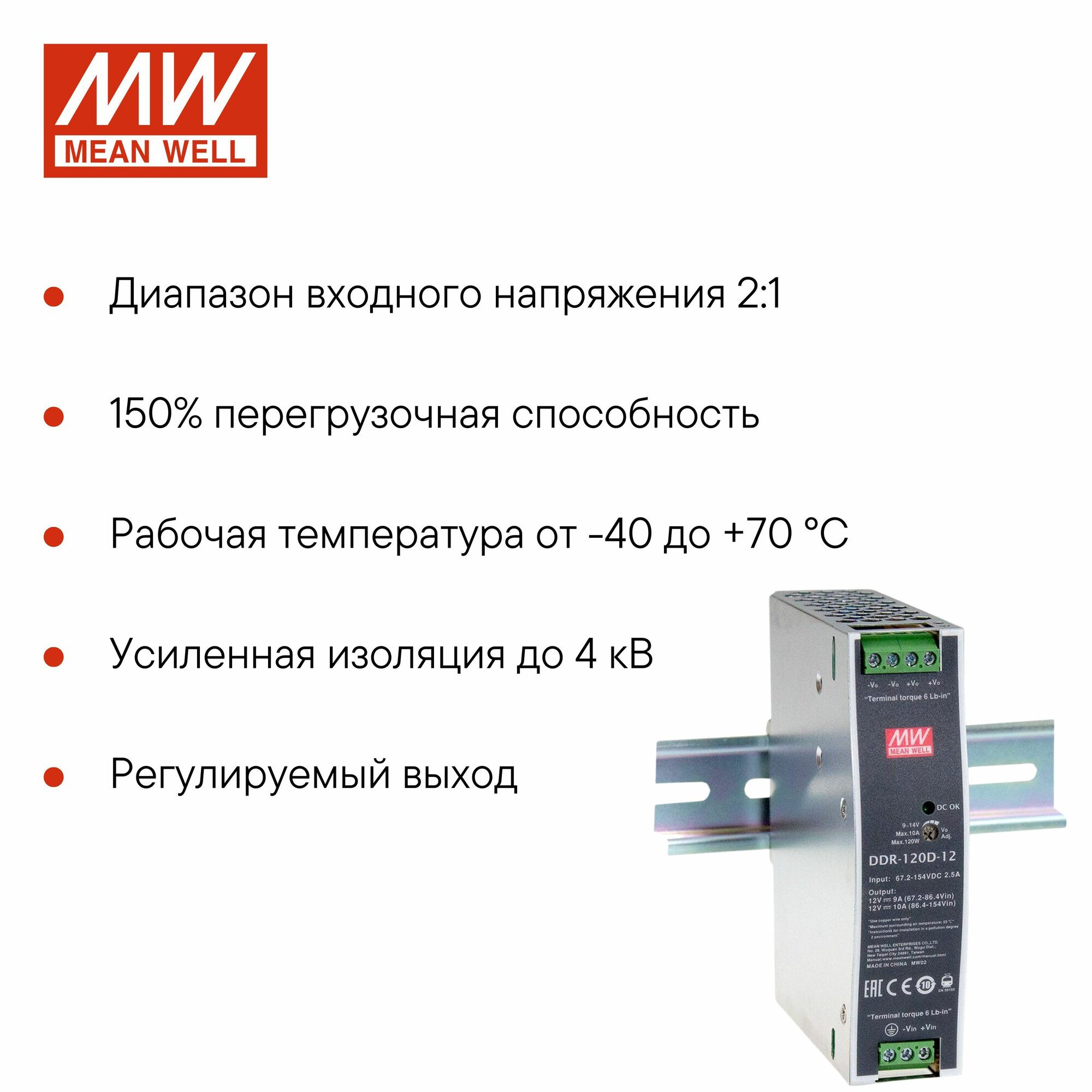 Купить DDR-120D-12 MEAN WELL Блок питания на DIN-рейку, DC/DC 120 Вт 12 В с доставкой по всей России. DDR-120D-12 MEAN WELL Блок питания на DIN-рейку, DC/DC 120 Вт 12 В: сравнение цен, характеристики, фото, актуальное наличие и цены.
