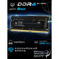 Оперативная память DDR4 SO-DIMM 2666MHz QOPP для ноутбука имеет современный продуктивный тип DDR 4, обеспечивающий большую, по сравнению с DDR3, энергоэффективность и пропускную способность, так что даже в условиях многозадачности система гарантирует хороший отклик. На это же работает и диапазон рабочих частот до 2666 МГц. ОЗУ ДДР4 имеет пропускную способность PC4-21300 МБ/с. Timing 19-19-19-43. Подходит для двухканального режима. Ноутбучная память ddr4 имеет напряжение 1.2 В.