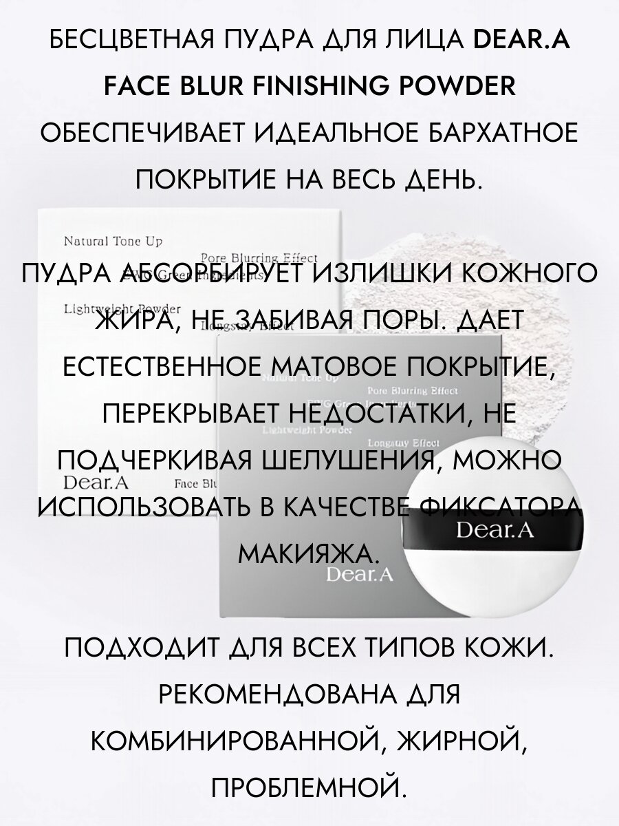 Купить Dear.A Пудра для лица транспарентная матирующая Face Blur Finishing Powder с доставкой по всей России.