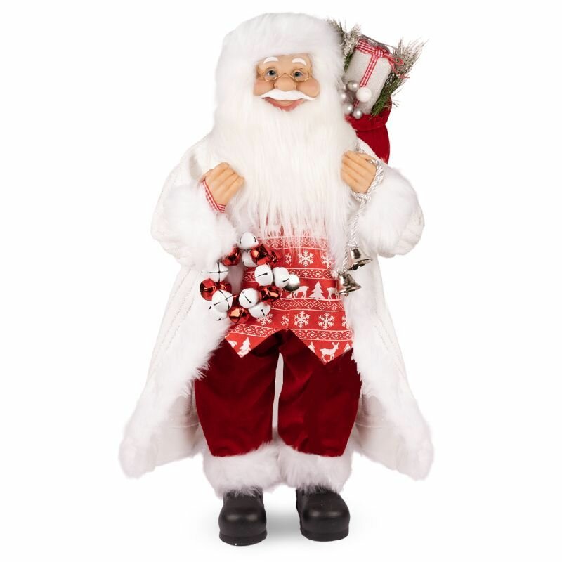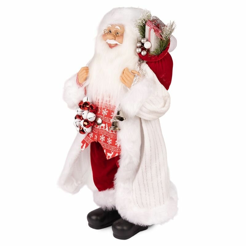 Дед Мороз от MAXITOYS надел длинную, пушистую и белую, будто снежное покрывало, шубку, соответствующую зимнему пейзажу за окнами. Красная, как тёплый румянец на щеках, жилетка очень нарядно смотрится с белым и хорошо подходит к сверкающей гирлянде! В самый раз для того, чтобы стоять под ёлочкой, наблюдая за тем, как хозяева её украшают и накрывают на стол, а потом глядеть на сам праздник. Дед Мороз от MAXITOYS отлично подготовился! А до этого дедушка будет ждать, греясь где-нибудь на полке или в ящике с игрушками в своей тёплой одежде, прислушиваясь к разговорам и радуясь, что достался хорошим и добрым людям!