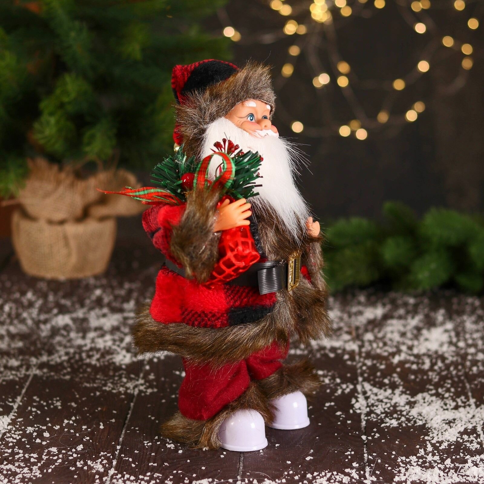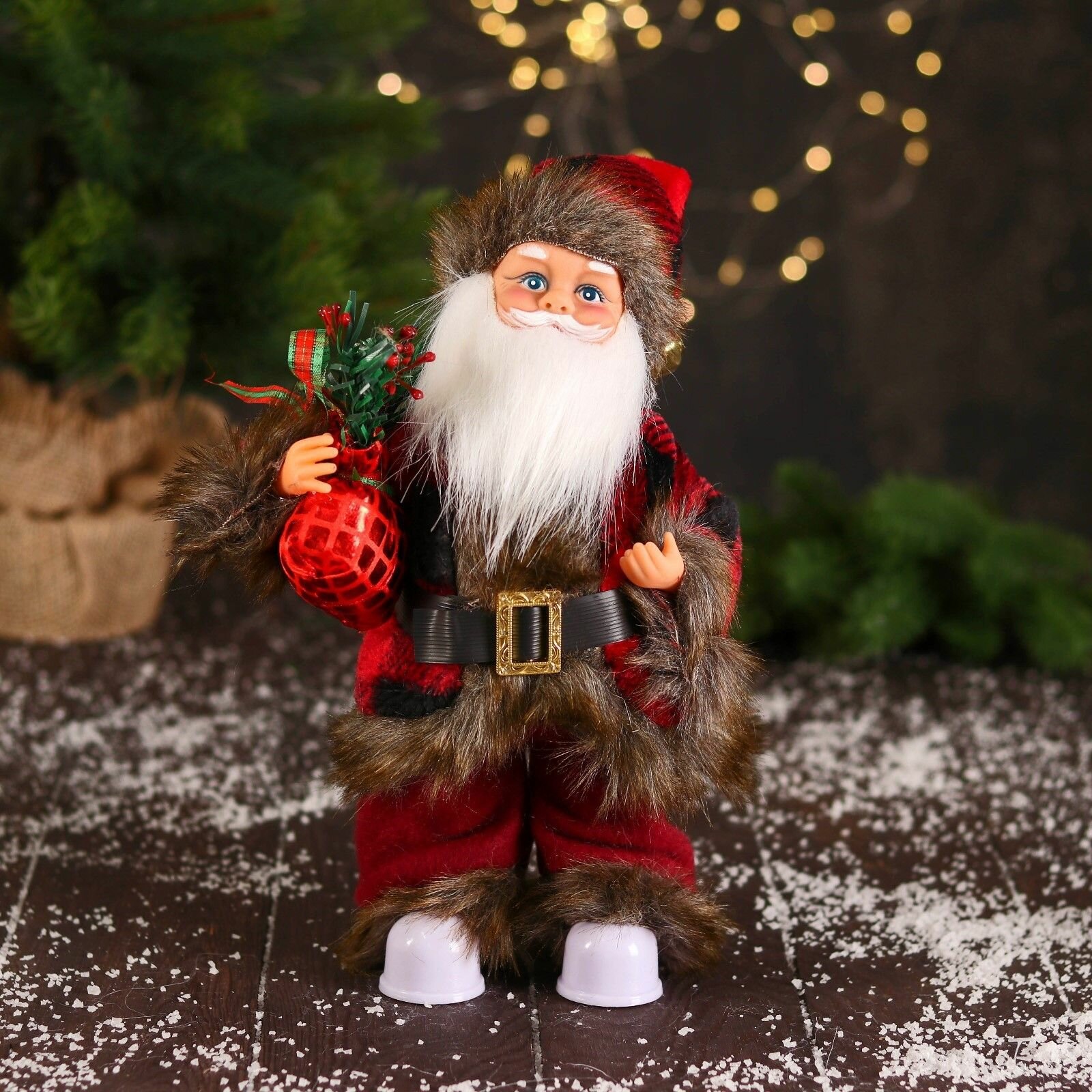 Купить Дед Мороз под ёлку Зимнее волшебство. Новогодняя игрушка в меховом красном костюмчике двигается, 30 см с доставкой по всей России.