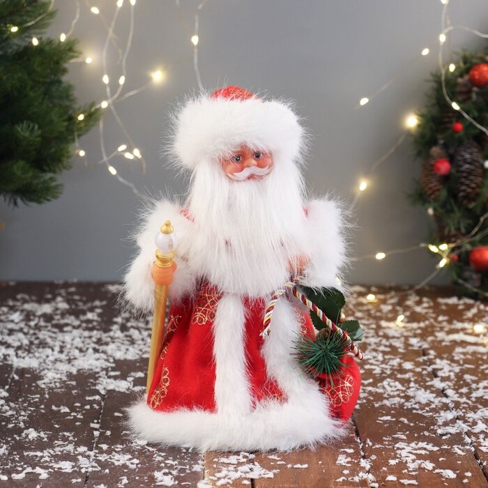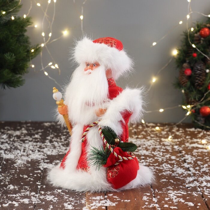 Дед Мороз под ёлку «Зимнее волшебство. Новогодняя игрушка в пушистой шубе, с мешком» двигается, 30 см, красный: сравнение цен, характеристики, фото, актуальное наличие и цены.