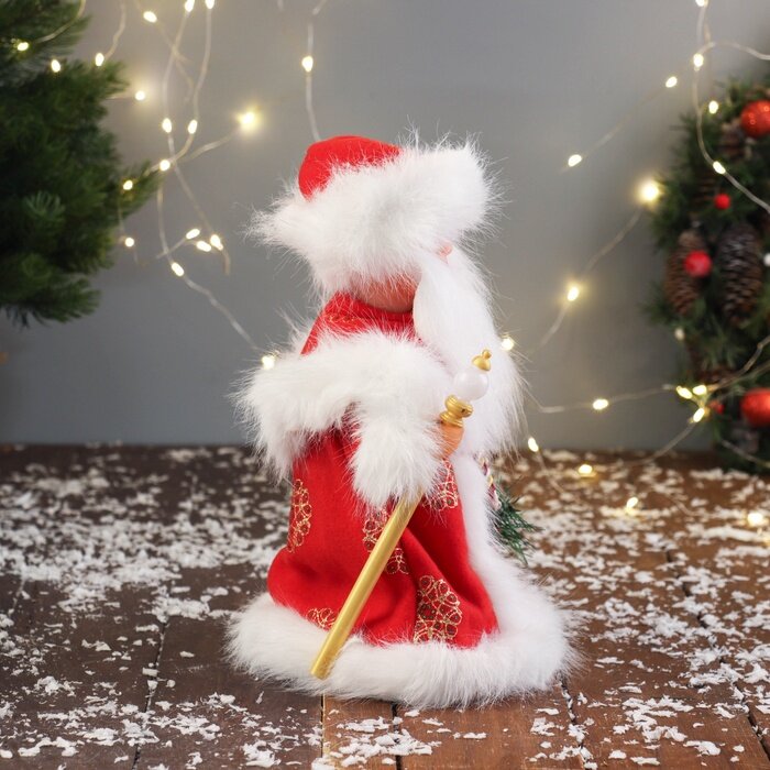 Купить Дед Мороз под ёлку «Зимнее волшебство. Новогодняя игрушка в пушистой шубе, с мешком» двигается, 30 см, красный с доставкой по всей России.