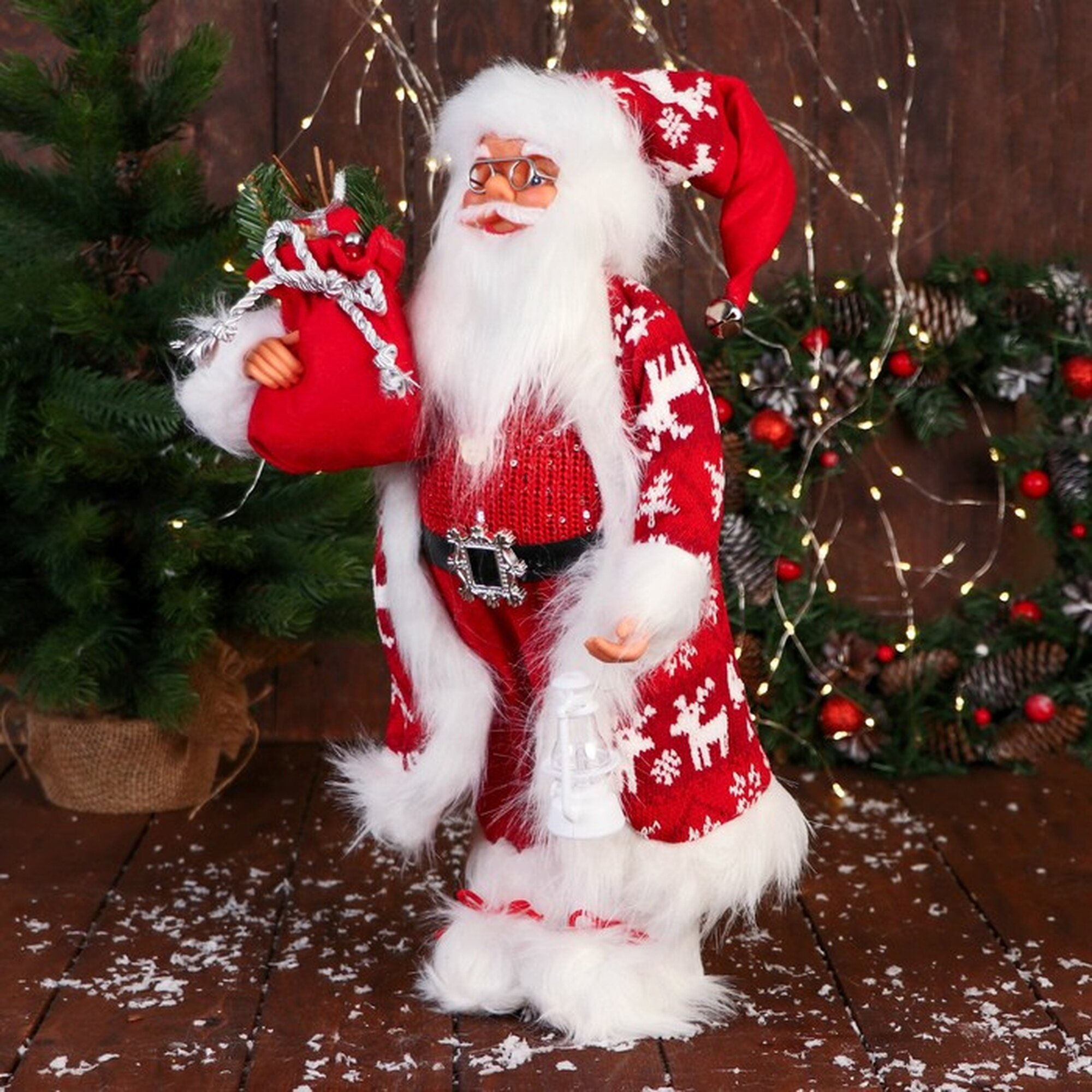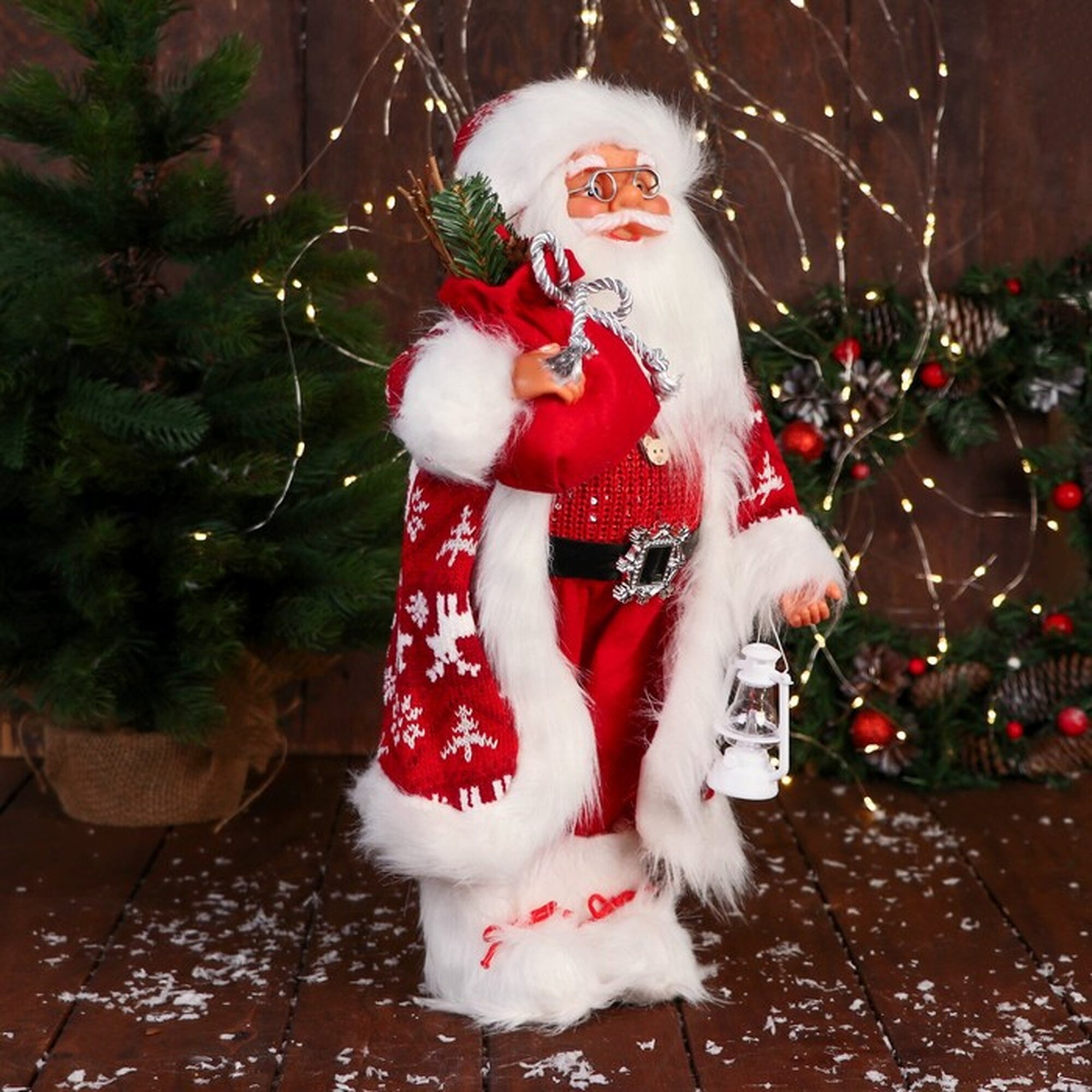 Дед Мороз "С фонариком и охапкой подарков" 50 см, красный