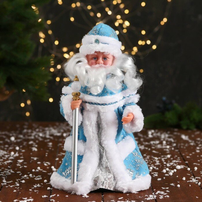 Купить Дед Мороз под ёлку «Зимнее волшебство. С фонариком на посохе и узорами на шубке», двигается, 30 см, голубой с доставкой по всей России.