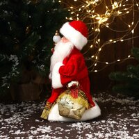 Купить Дед Мороз «С украшенным посохом и мешком» двигается, с подсветкой, 30х16 см, красный с доставкой по всей России.