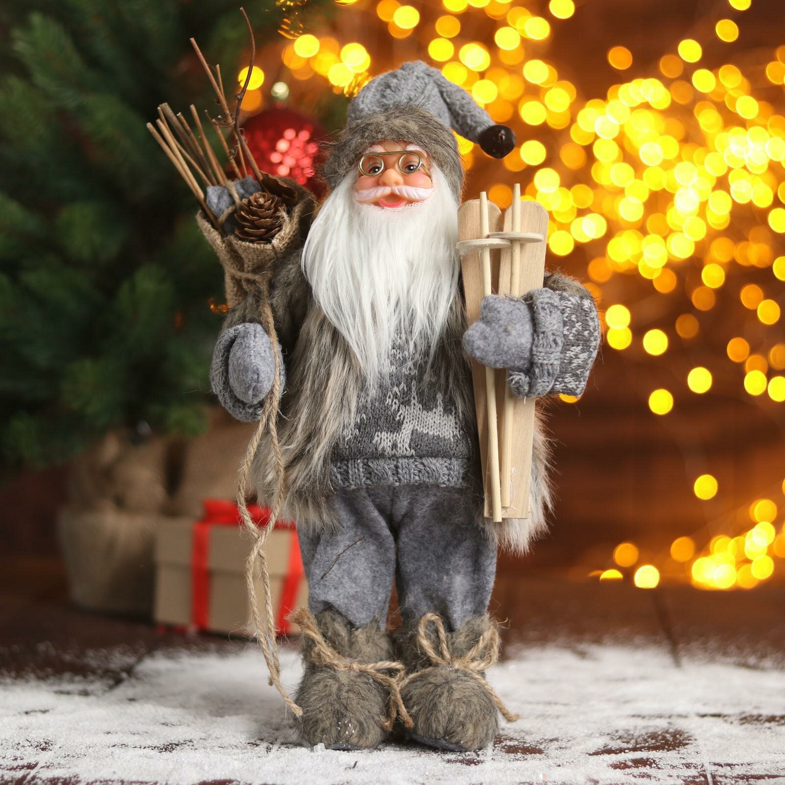Купить Дед Мороз «В сером костюмчике с лыжами» 18х30 см, 5036023 с доставкой по всей России.