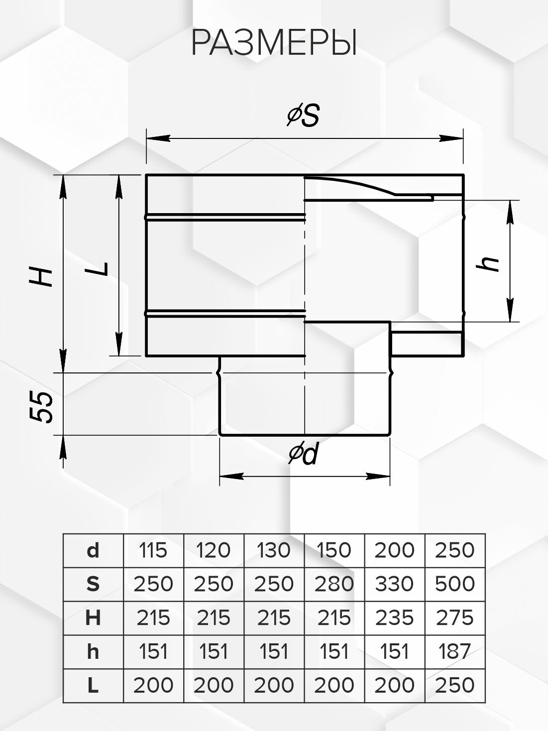 Завершающий элемент дымового канала. Помимо защиты от атмосферных осадков и листвы, препятствует возникновению обратной тяги из-за порыров ветра. Изготовлен из коррозионностойкой нержавеющей стали AISI 316L. Толщина стенки 0,8 мм, окрашен матовой черной термостойкой эмалью, что исключает появление следов побежалости. Толщина стенки 0,8 мм. Холодная формовка раструбного соединения с идеальной геометрией и газоплотностью. Лазерная сварка встык обеспечивает тонкий и прочный шов, увеличивая в разы срок эксплуатации. Рабочая температура до 600°С.