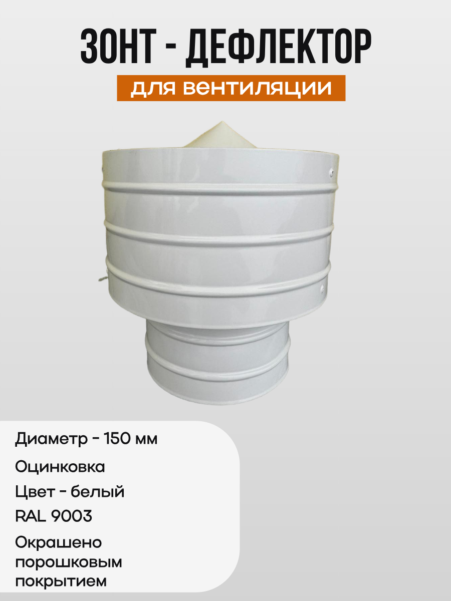 Купить Дефлектор для вытяжной вентиляции d-150, оцинкованная сталь, порошковое покрытие, белый, RAL 9003 с доставкой по всей России. Дефлектор для вытяжной вентиляции d-150, оцинкованная сталь, порошковое покрытие, белый, RAL 9003: сравнение цен, характеристики, фото, актуальное наличие и цены.
