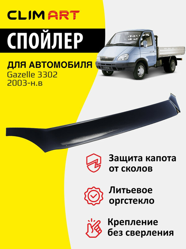 Купить Дефлектор капота Clim Art Gazelle 3302, спойлер на капот с еврокрепежом Газель 3302 (2003-н. в.) с доставкой по всей России.