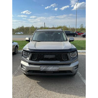 Дефлектор капота (мухобойка) разработан специально для Haval H7 2024, 2025 (Хавал, Хавейл Н7). Дефлектор капота защищает от попадания различных камней переднюю часть капота авто, которая наиболее подвержена таким попаданиям. Поэтому мухобойка защищает от сколов, из-за которых потом образуются ржавчины. Наш спойлер на капот сконструирован таким образом, что после установки, между ним и капотом остается зазор, позволяющий спокойно стекать воде, и проходить воздуху. Что препятствует возникновению коррозии. Дефлектор капота крепится надёжными металлическими кронштейнами. В комплекте к каждой мухобойке идёт бронеплёнка, которая клеится капот в тех местах, где будут прижиматься крепления! Дополнительные резиновые демпферы предотвращают вибрацию дефлектора во время движения.