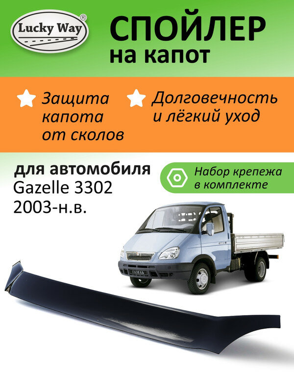 Купить Дефлектор капота Lucky Way Gazelle 3302, спойлер на капот с еврокрепежом Газель 3302 (2003-н. в.) с доставкой по всей России.
