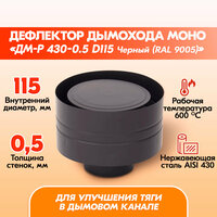 В линейке дефлекторов Моно ДМ-Р, выполненных из нержавейки AISI 430, имеются также модели, окрашенные черной высокотемпературной матовой эмалью (цвет по каталогу - Ral 9005). Оттенок RAL 9005 отличается глубоким и насыщенным черным цветом с матовой текстурой.