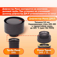 Дефлектор дымохода Моно является финальным элементом дымохода и встраивается как в систему Моно, так и Термо.