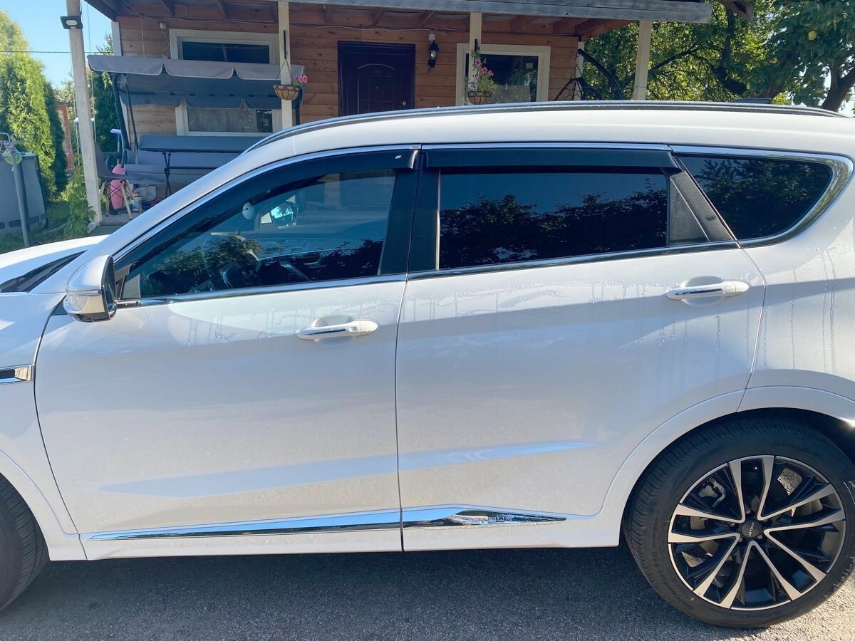 Ветровики с хром полосой (молдингом) на окна, разработаны специально для Jetour X70 PLUS (Джетур х70 плюс) 2020-2025, Soueast S07 (Соуист с07) 2024, 2025, повторяют все изгибы автомобиля, идеально подойдут, не требуют подгонки.