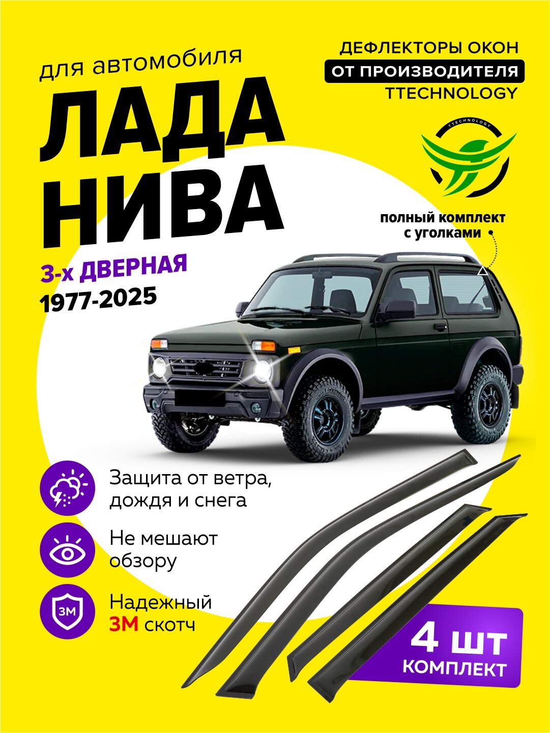 Дефлекторы боковых окон для Лада Нива, Ваз 21214 (Lada Niva) 3-х дверная, 1977-2025, полный комплект с уголками, 4 шт, ветровики на двери автомобиля, ТТ: сравнение цен, характеристики, фото, актуальное наличие и цены.